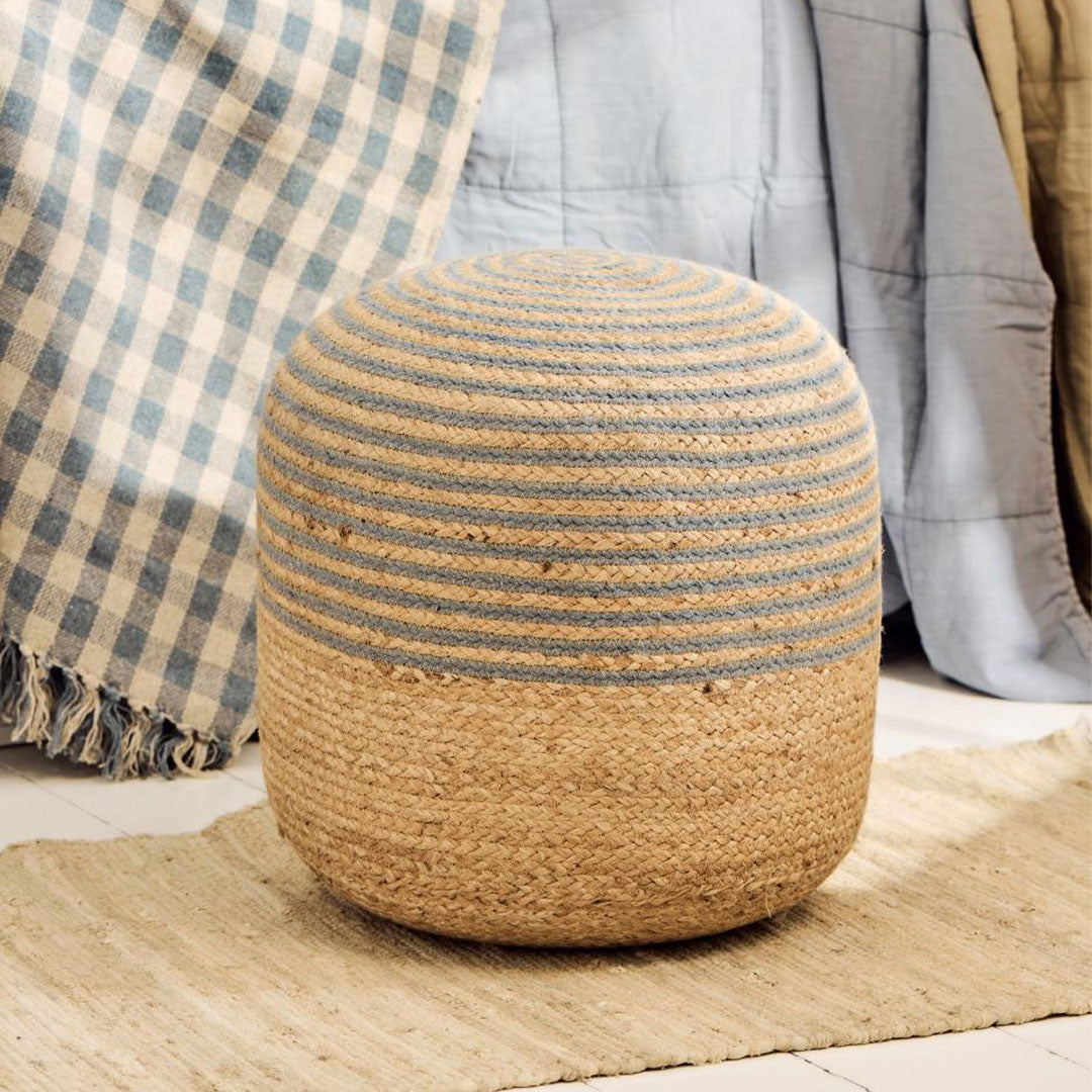 Puf i Jute med Blå Bomuldsstriber – Natur og Komfort i Ét