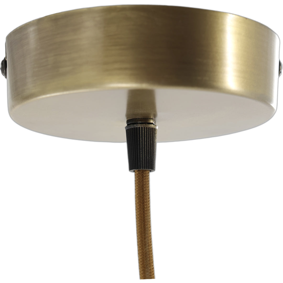 Med sin bredere diameter giver denne variant et markant, men stadig let udtryk, som gør lampen ideel over spisebordet, i køkkenet eller som stemningsfuld pendel i stuen. Den emaljerede overflade suppleres smukt af den medfølgende stofledning og loftroset i messing, som tilfører et eksklusivt finish.