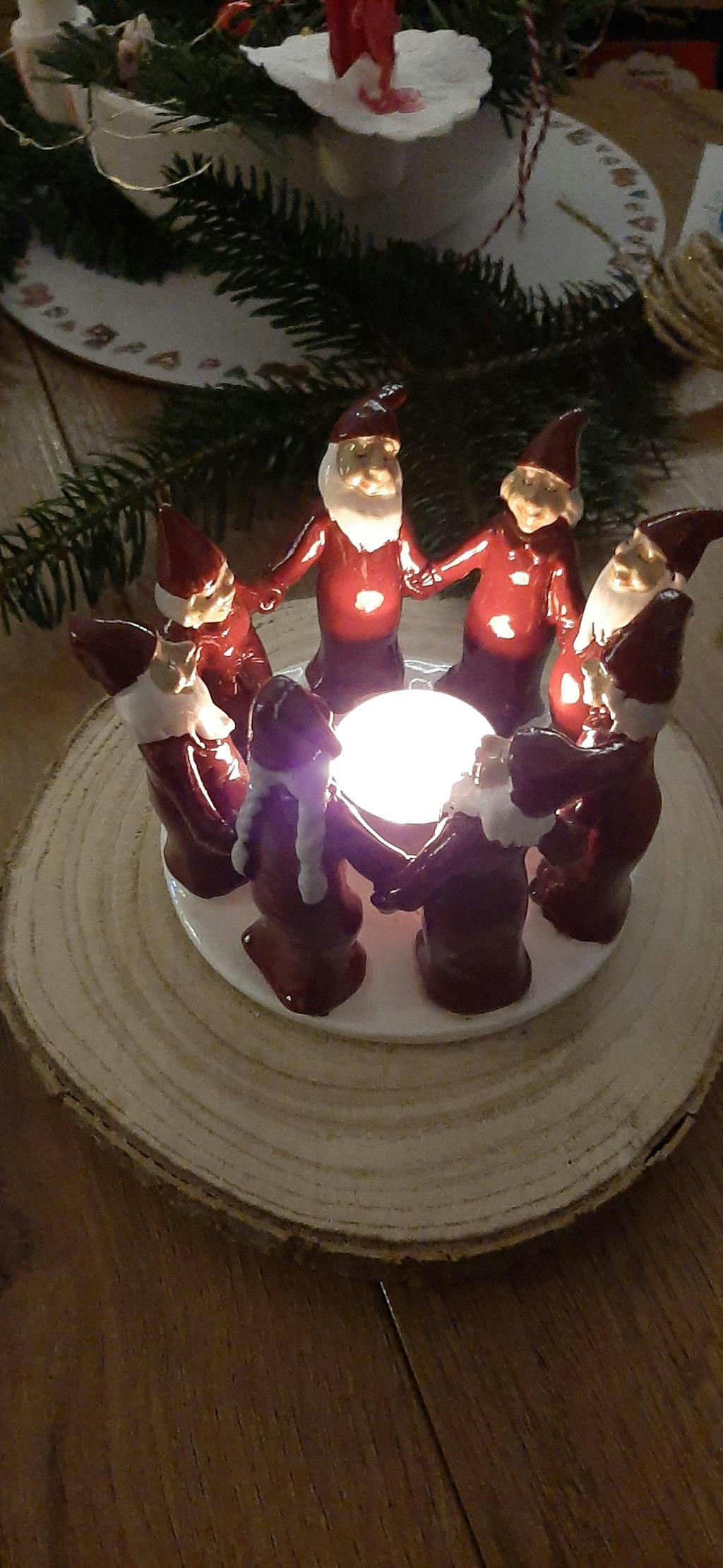 Skab autentisk julestemning i hjemmet med denne charmerende lille nissering fra Harvesttime. Figuren forestiller en kreds af nisser i røde dragter, der holder hinanden i hænderne omkring et fyrfadslys. Når lyset tændes, spreder ringen en varm og hyggelig atmosfære, perfekt til vintermånederne.