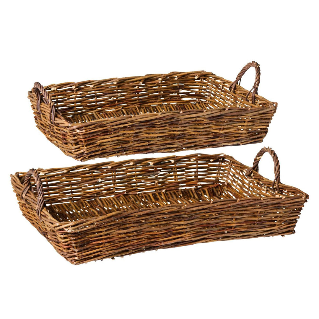 Tilføj et naturligt og rustikt udtryk til hjemmet med dette smukke håndlavede kurvesæt i ubarket pil. Sættet består af to kurve med lav kant og praktiske hanke i enderne, som gør dem nemme at bære. Den autentiske fletning og varme farvetone skaber en hyggelig atmosfære, uanset om kurvene bruges til opbevaring, servering eller som dekorativ gavekurv.