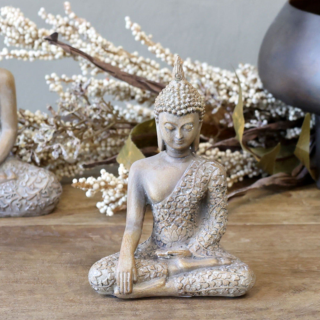 Skab en rolig og afslappet stemning i dit hjem med denne smukke siddende Buddha figur fra Chic Antique. Figuren er udført i polyresin med fine detaljer og en elegant latte-farvet finish, som giver et harmonisk og tidløst udtryk. Perfekt til at skabe et meditativt hjørne i stuen, på badeværelset eller som en del af et smukt stilleben.
