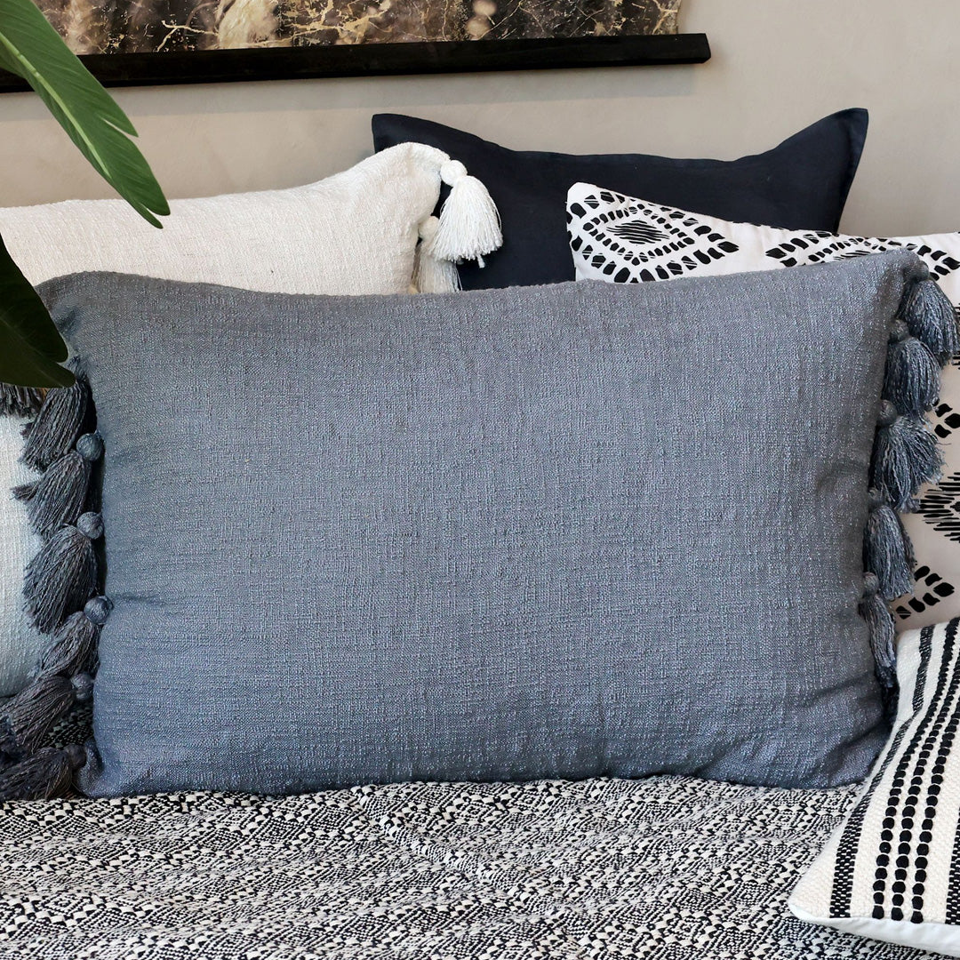 Tilfør dit hjem et strejf af boheme-elegance med dette smukke Aix pudebetræk med kvaster fra Chic Antique. Den dybe opalblå nuance kombineret med dekorative kvaster i siderne giver puden et unikt og håndlavet udtryk, der passer perfekt til både stuen og soveværelset.