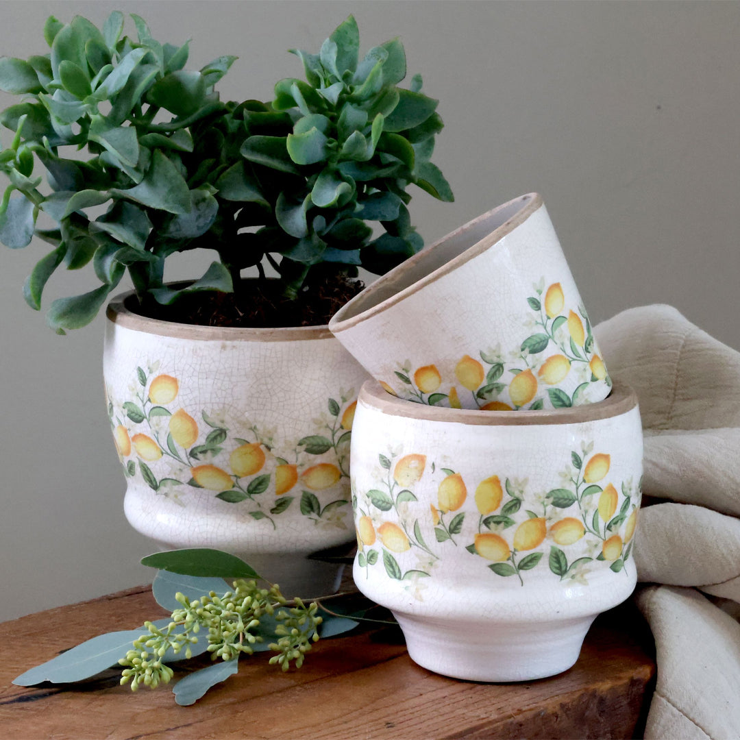 Dekorativ og stemningsfuld skjuler i keramik, håndmalet med fine citroner og blomster i en blød cremefarve. Det levende motiv giver et friskt, sydlandsk udtryk, som passer perfekt til både indendørs og udendørs brug. Da skjuleren er håndmalet, kan der forekomme variationer i farve og finish, hvilket gør hver enkelt unik.