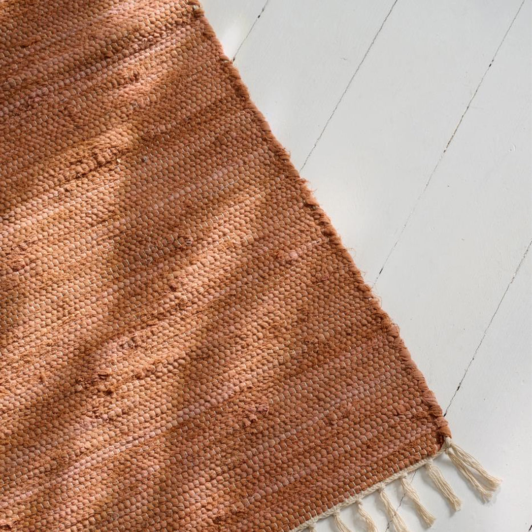 Langt kludetæppe i vævet bomuld, perfekt til smalle rum. Ideel som gulvtæppe i gang, entré, køkken eller sommerhus. Tæppet er let at rengøre – tørres blot af med en fugtig klud, så det altid fremstår frisk og indbydende.