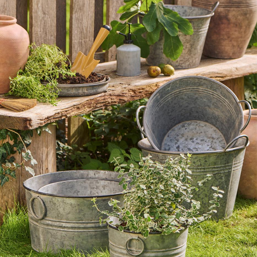 Sæt med 2 runde lysbakker fra Urban Garden-serien, kendt for sit rå og industrielle udtryk. Den lave kant og robuste overflade gør bakkerne ideelle til lys, planter eller dekorationer, og de skaber nemt en rustik og hyggelig stemning i stuen, på terrassen eller i orangeriet.