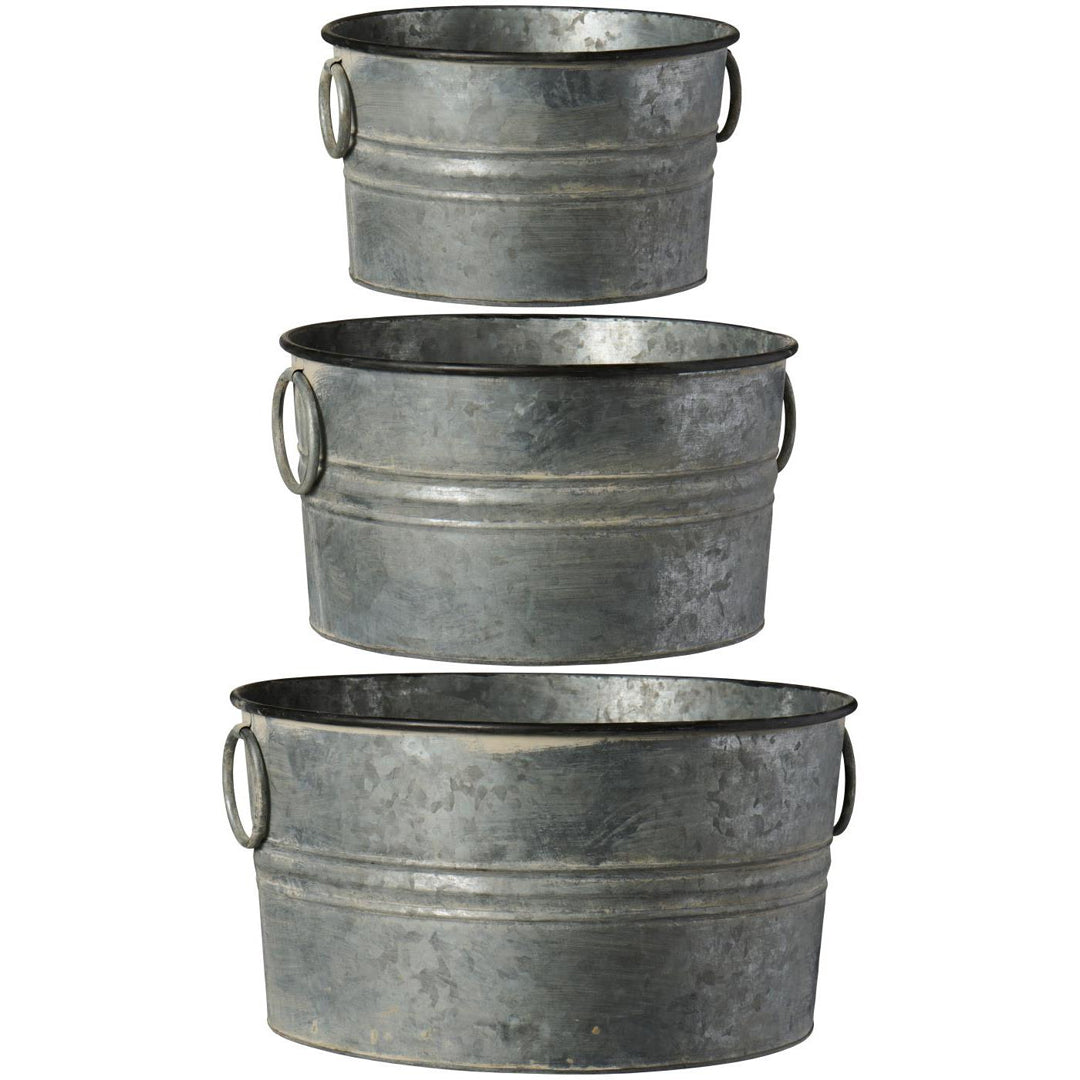 Sæt med 3 runde skjulere fra Urban Garden-serien, kendt for sit rå og industrielle udtryk. De tre forskellige størrelser gør det nemt at skabe en flot, varieret planteopstilling, mens de praktiske hanke tilføjer både funktionalitet og dekorativt design. Perfekte til haven, terrassen eller en moderne, urban indretning.