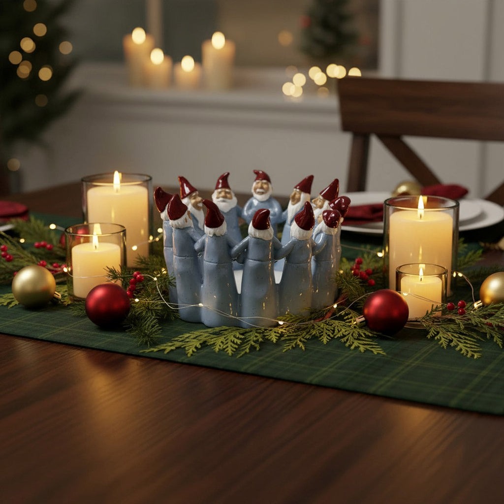 Tomteringe er charmerende figurer, hvor små nisser står i rundkreds omkring et fyrfadslys. Når lyset tændes, spreder de varme og glæde i hele rummet. De findes i mange forskellige modeller og størrelser – fra små dekorative varianter til større figurer, der bliver et naturligt midtpunkt i julepynten.