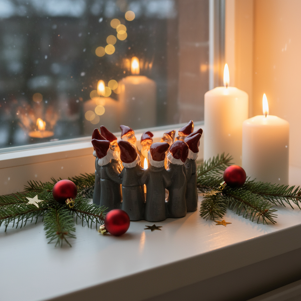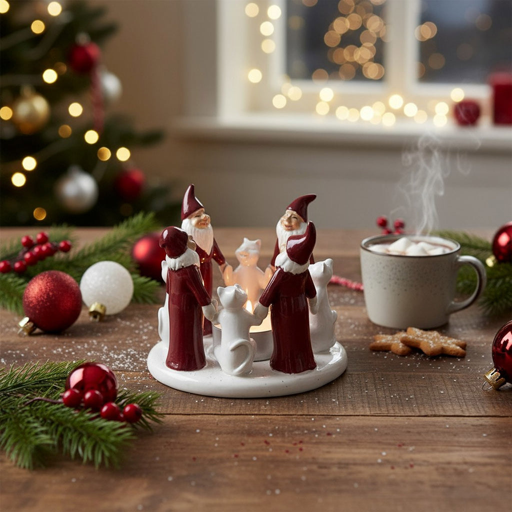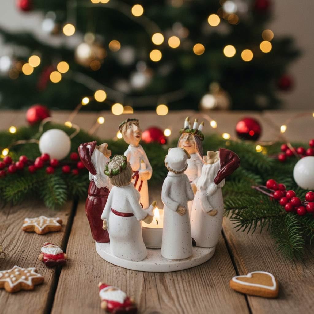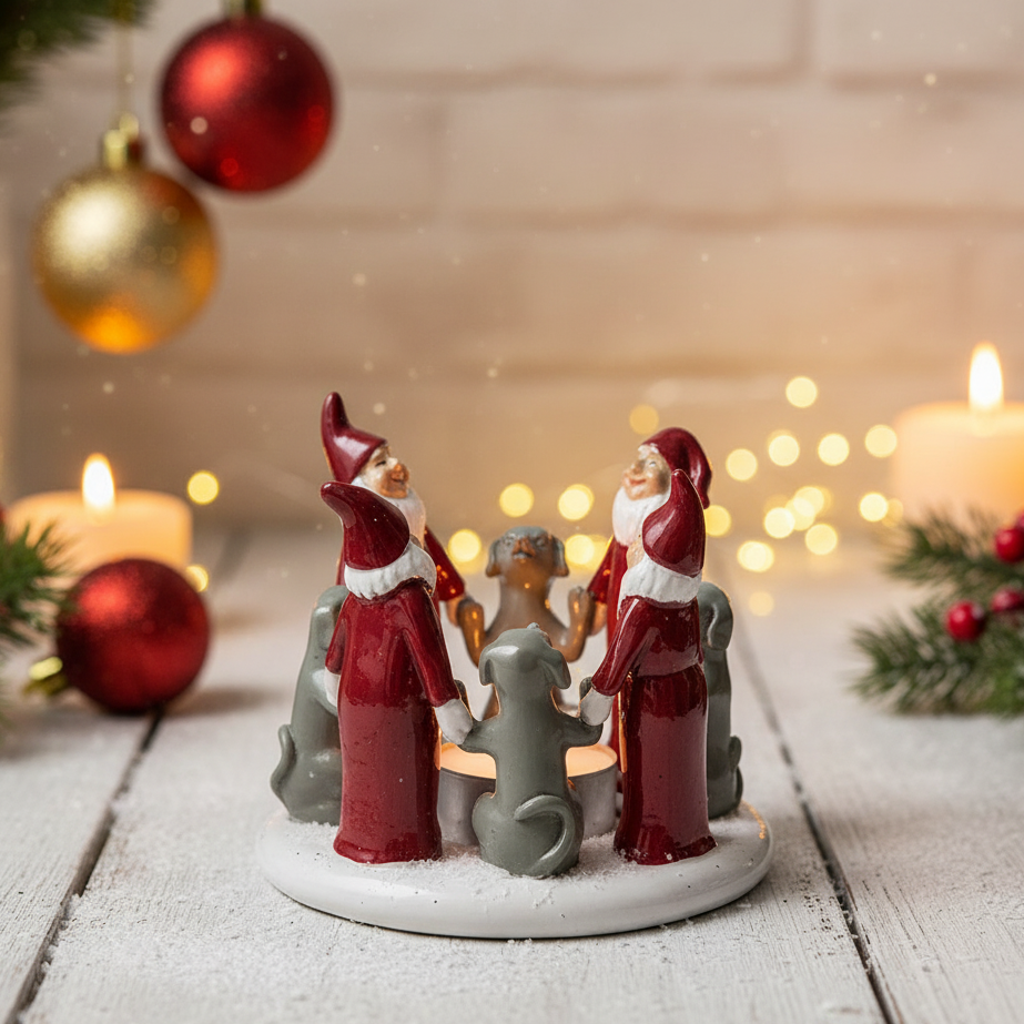 Tomteringe er charmerende figurer, hvor små nisser står i rundkreds omkring et fyrfadslys. Når lyset tændes, spreder de varme og glæde i hele rummet. De findes i mange forskellige modeller og størrelser – fra små dekorative varianter til større figurer, der bliver et naturligt midtpunkt i julepynten.