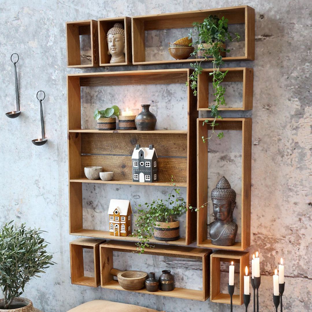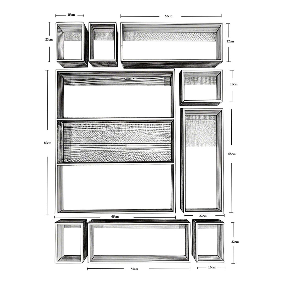 Skab din egen personlige opbevaringsløsning med dette elegante reolsæt i naturfarvet fyrretræ. Sættet består af 9 individuelle reoler i forskellige størrelser, som du kan kombinere og arrangere på utallige måder – perfekt til både stue, entré, kontor eller børneværelse.