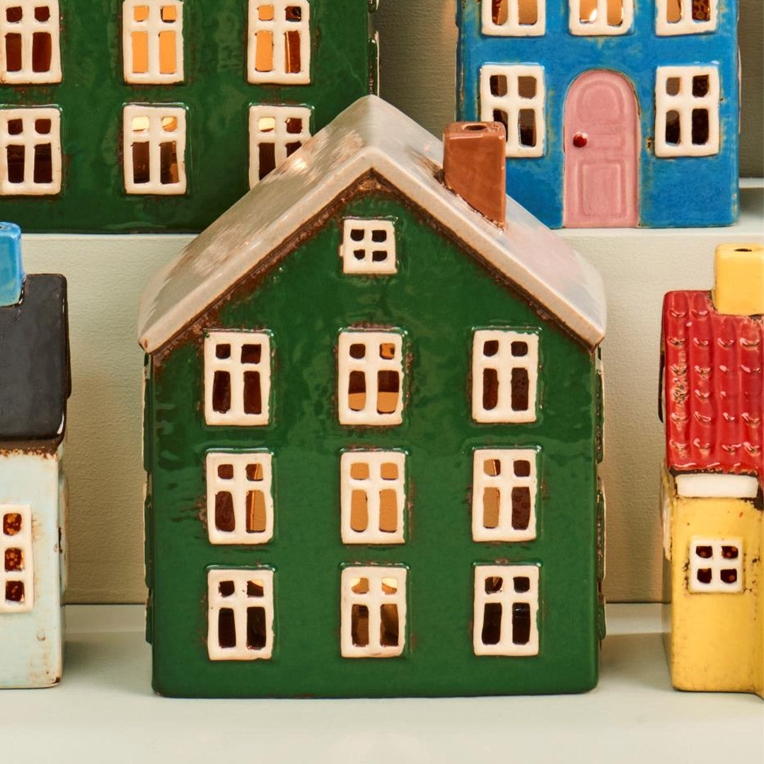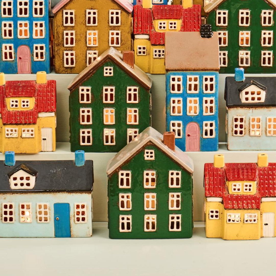 Hvert hus i denne serie er unikt, da det er håndlavet med et rustikt udtryk, der giver det en helt særlig karakter. Stil et fyrfadslys eller en lyskæde bag de små vinduer for at skabe et hyggeligt og varmt lys, der spreder ro og stemning i rummet. Huset er smukt alene, men kan også samles med andre huse fra Nyhavn-serien for at danne et farverigt og charmerende nabolag.