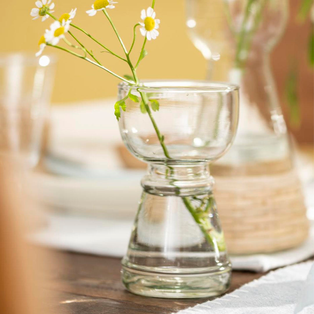Elegant pokalformet hyacintvase fremstillet i mundblæst glas. Håndværket bag vasen skaber et unikt udtryk, hvor små variationer i form, tykkelse og overflade giver hver vase sin helt egen charme. Perfekt som dekoration eller til blomsterarrangementer.
