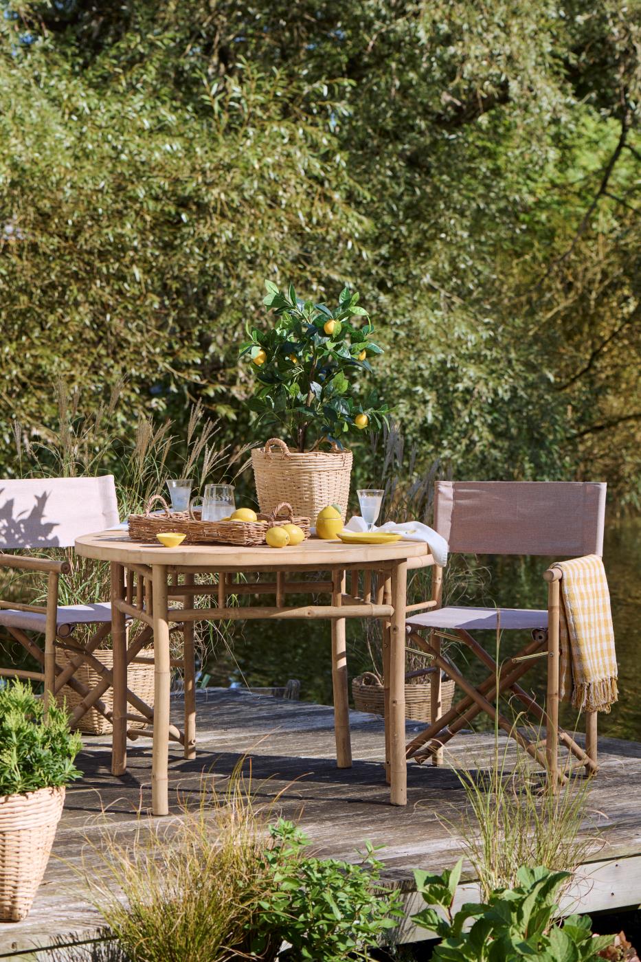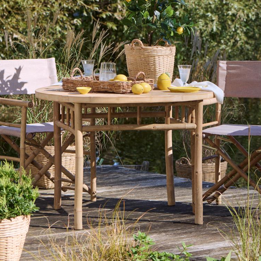 Det tidløse design gør bordet nemt at kombinere med både bambusstole, loungemøbler og klassiske havestole. Perfekt til terrassen, udestuen eller et lyst køkken-alrum, hvor naturmaterialer får lov at sætte stemningen.