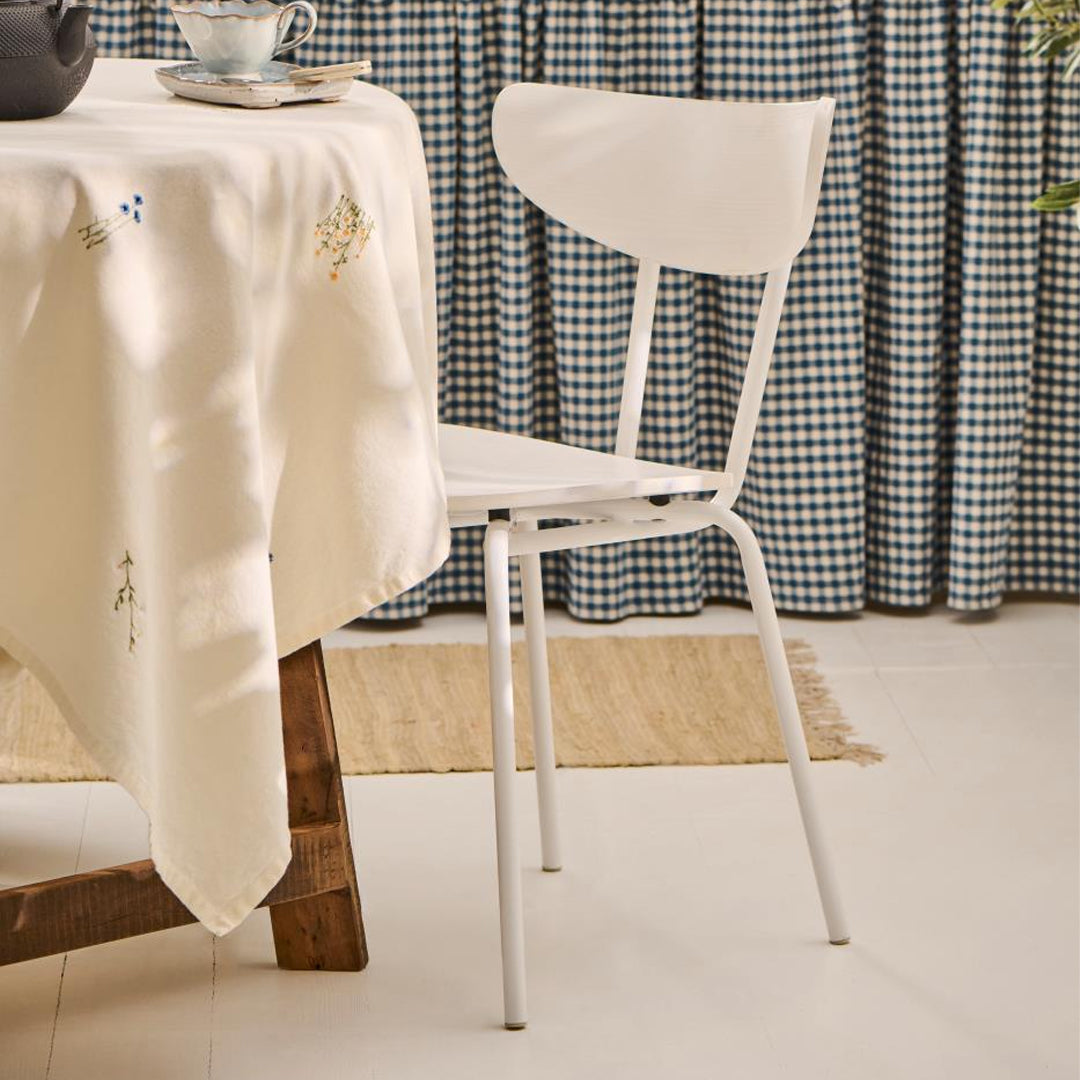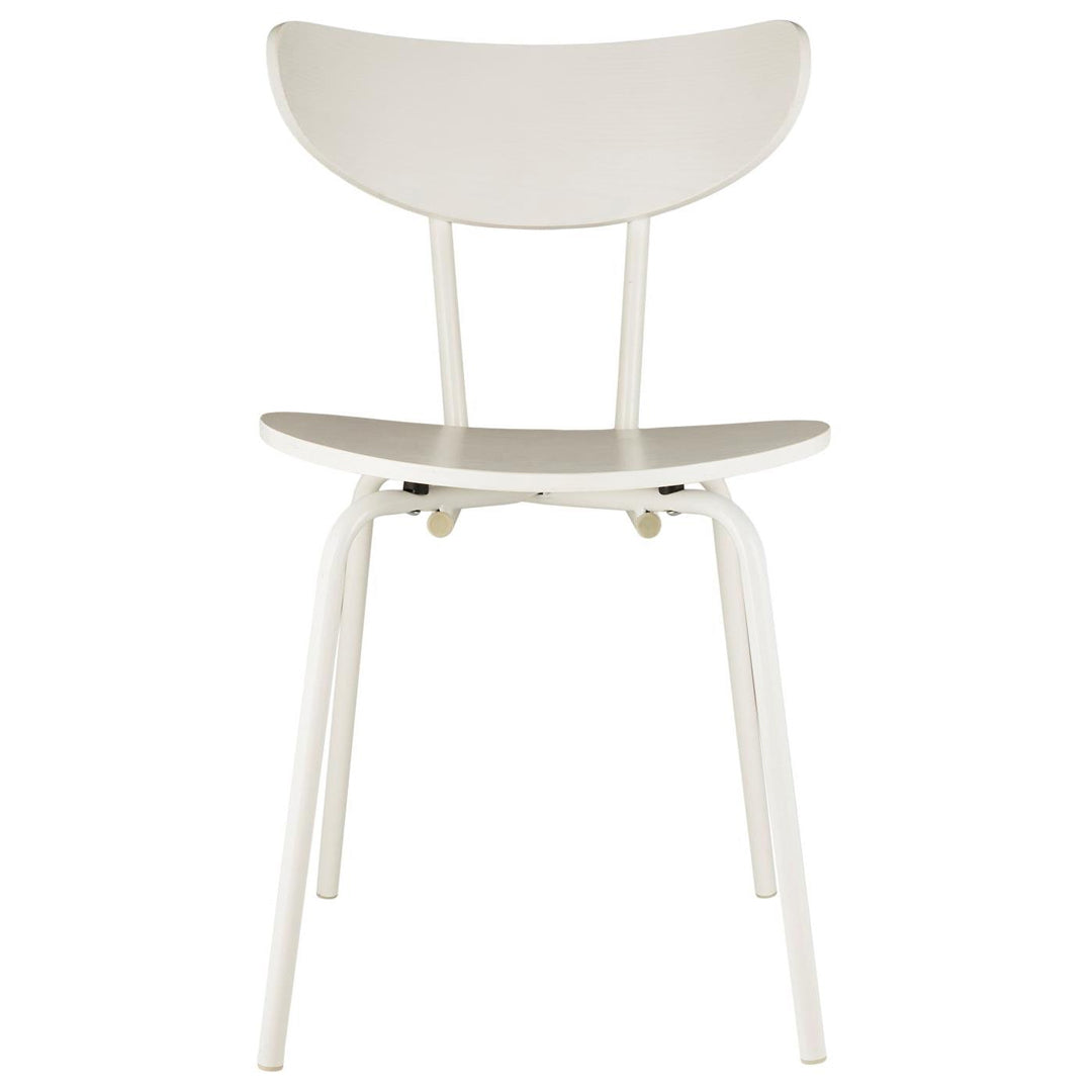 Denne stilrene stol kombinerer et let og moderne udtryk med praktisk funktionalitet. Sæde og ryg er udført i hvid finér, som giver stolen et blødt og elegant look, mens det hvide metalstel sikrer stabilitet og et minimalistisk design. Stolen passer perfekt omkring spisebordet, i køkkenet eller som ekstra siddeplads – og kan nemt stables, når den ikke er i brug.