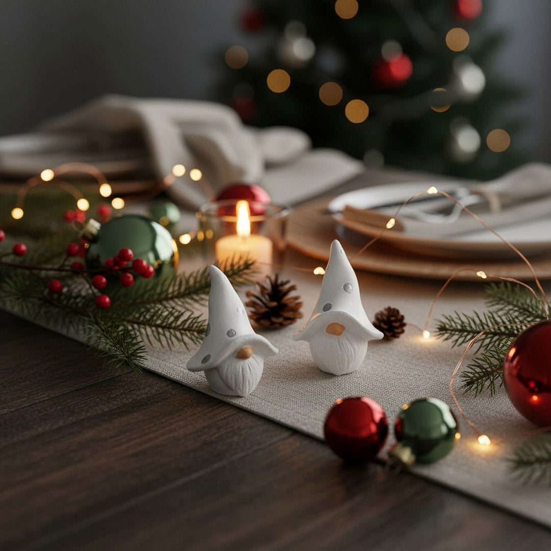 Nissehuerne er hvide med grå prikker og giver et stilrent og nordisk udtryk, der passer smukt ind i både moderne og klassisk julepynt. Figurernes enkle og nostalgiske design er skabt i samarbejde med svenske keramiske kunstnere og udstråler autentisk håndværk.