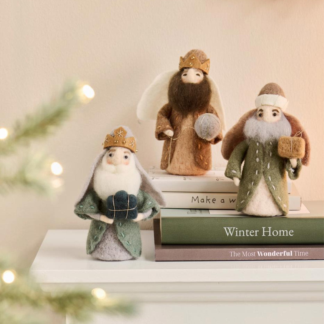 Skab varme og hygge i dit hjem med denne charmerende serie af håndlavede figurer. De 3 vise mænd er lavet af filt, hvilket giver dem et levende og unikt udtryk – ingen figurer er ens. Perfekte som dekoration på hylden, i vindueskarmen eller som en del af din julepynt, spreder de både glæde og en hjemlig atmosfære.