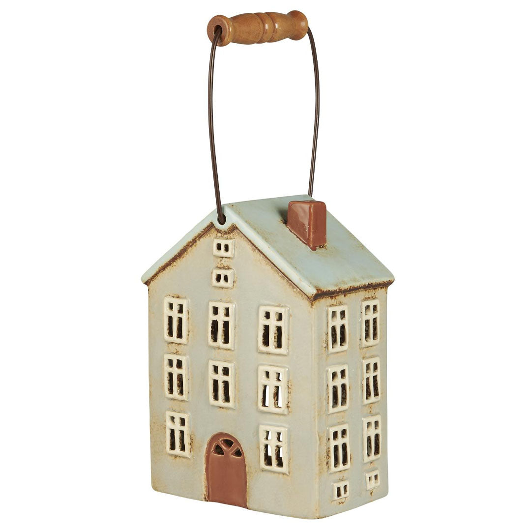 Bring den farverige charme fra København hjem med Hus t/fyrfadslys Nyhavn med træhank og brun dør. Dette keramikhus er inspireret af de maleriske bygninger i Nyhavn, der pryder den smukke havnefront i hovedstaden. Hvert hus er håndlavet, hvilket giver et unikt, rustikt og personligt præg.