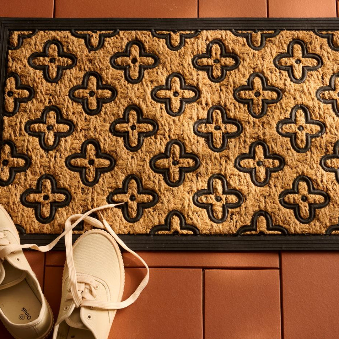 Byd dine gæster velkommen med denne dekorative dørmåtte med blomstermotiv. Måtten er fremstillet i kokos med PVC-bagside og har et charmerende og indbydende udtryk, der giver entréen et personligt præg.