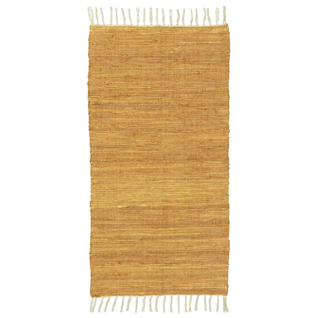 Denne dekorative kludetæppe i vævet bomuld tilfører rummet varme og karakter. Den varme mustard-farve giver et moderne og samtidig hyggeligt udtryk, der passer perfekt ind i både stue, soveværelse, entré og sommerhus.