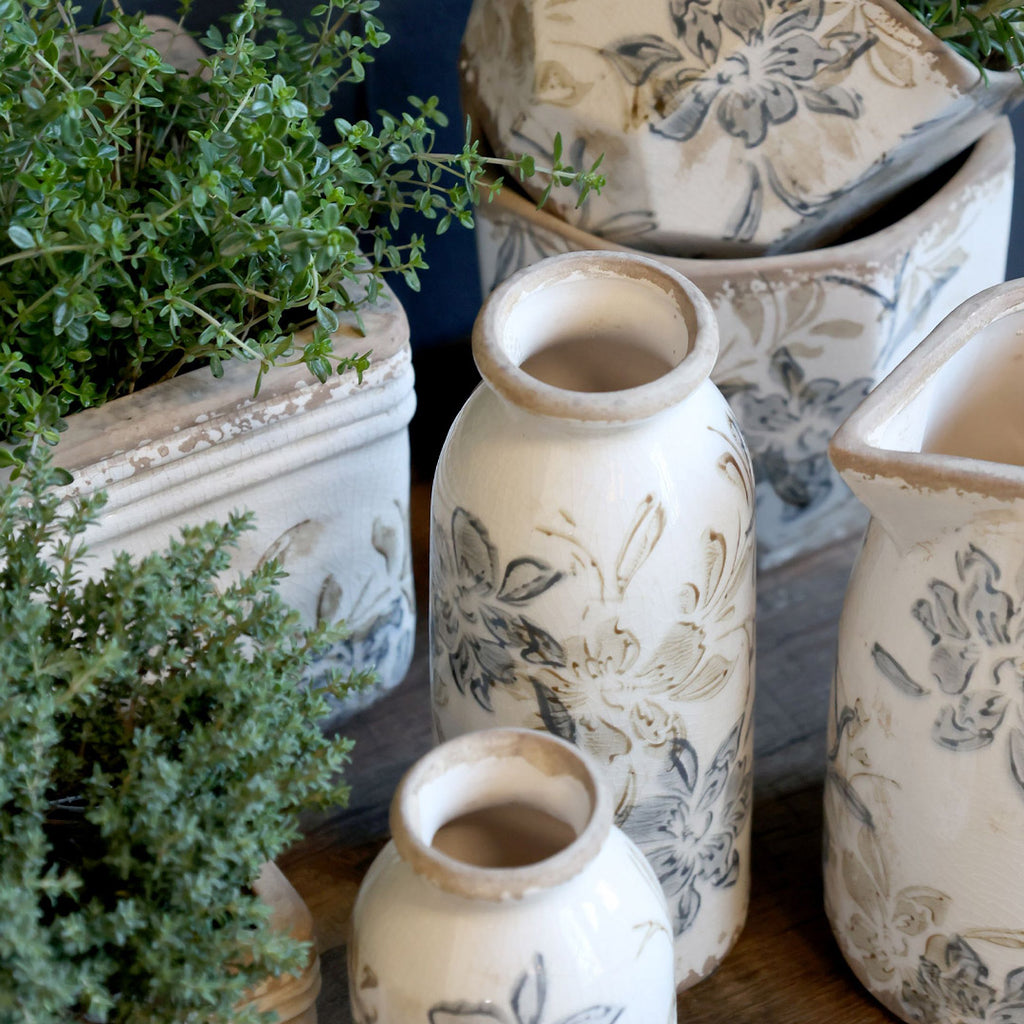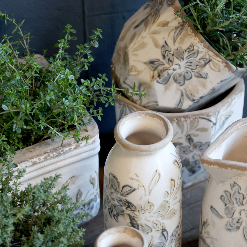 De dekorative skjulere i antik zink, jern og stentøjslignende materialer tilføjer en autentisk vintage-stemning og fungerer som smukke elementer i enhver indretning. Uanset om du foretrækker ovale, rillede, væghængte eller klassisk formede skjulere på fod, finder du et bredt udvalg i forskellige størrelser og designs.