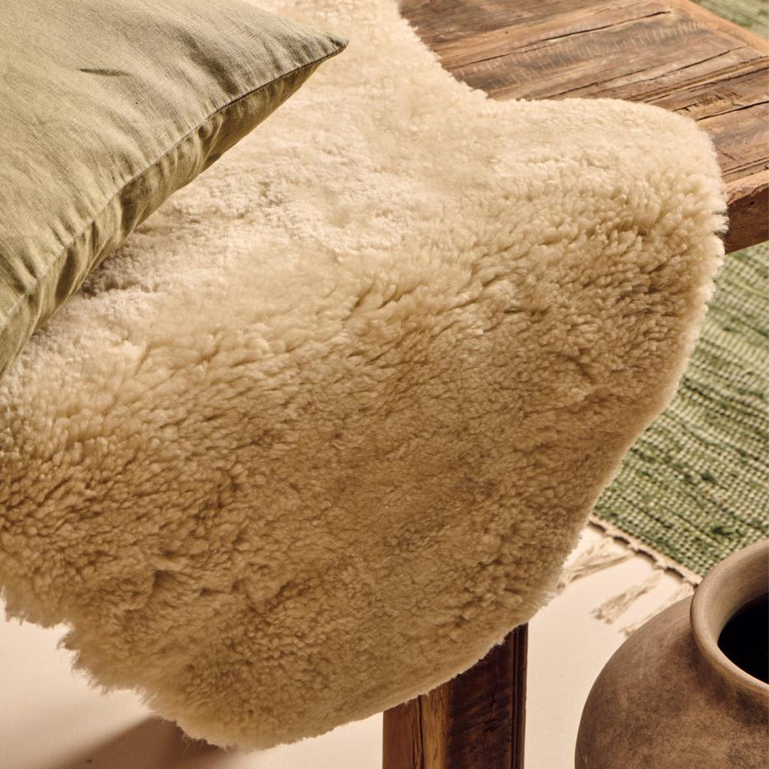 Sherpa lammeskind fra Ib Laursen i en lys og blød butter cream nuance. Lammeskindet har en tæt og fyldig overflade, der gør det særligt behageligt at sidde på og rart at bruge i hverdagen. Ideelt som lammeskind i sofaen, lænestolen eller soveværelset, hvor det tilfører varme, komfort og et roligt udtryk. Hvert skind er unikt i form, struktur og pelslængde.
