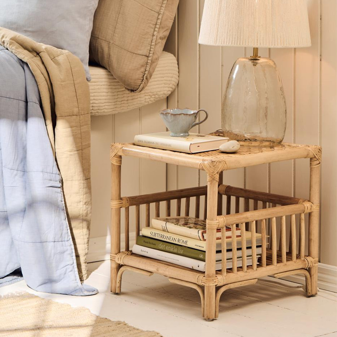Sidebordet Janet er et smukt og funktionelt møbel i naturlig rattan, der tilfører rummet et let og varmt udtryk. Det håndlavede design giver hvert bord sit eget unikke præg og gør det til et dekorativt element i både soveværelset, stuen eller entréen. Den praktiske hylde giver ekstra opbevaringsplads til bøger, magasiner eller småting, så bordet både er æstetisk og funktionelt.