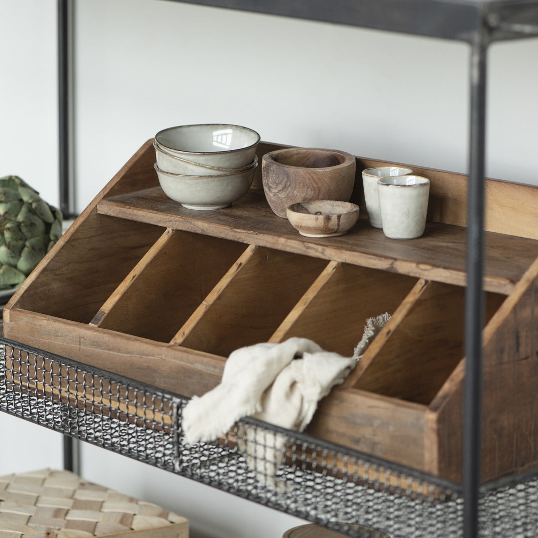 Denne rummelige træboks er ideel til opbevaring af bestik, køkkenredskaber eller endda kreative kontorartikler. Med sin rustikke charme og autentiske træfinish tilføjer den varme og personlighed til ethvert rum.