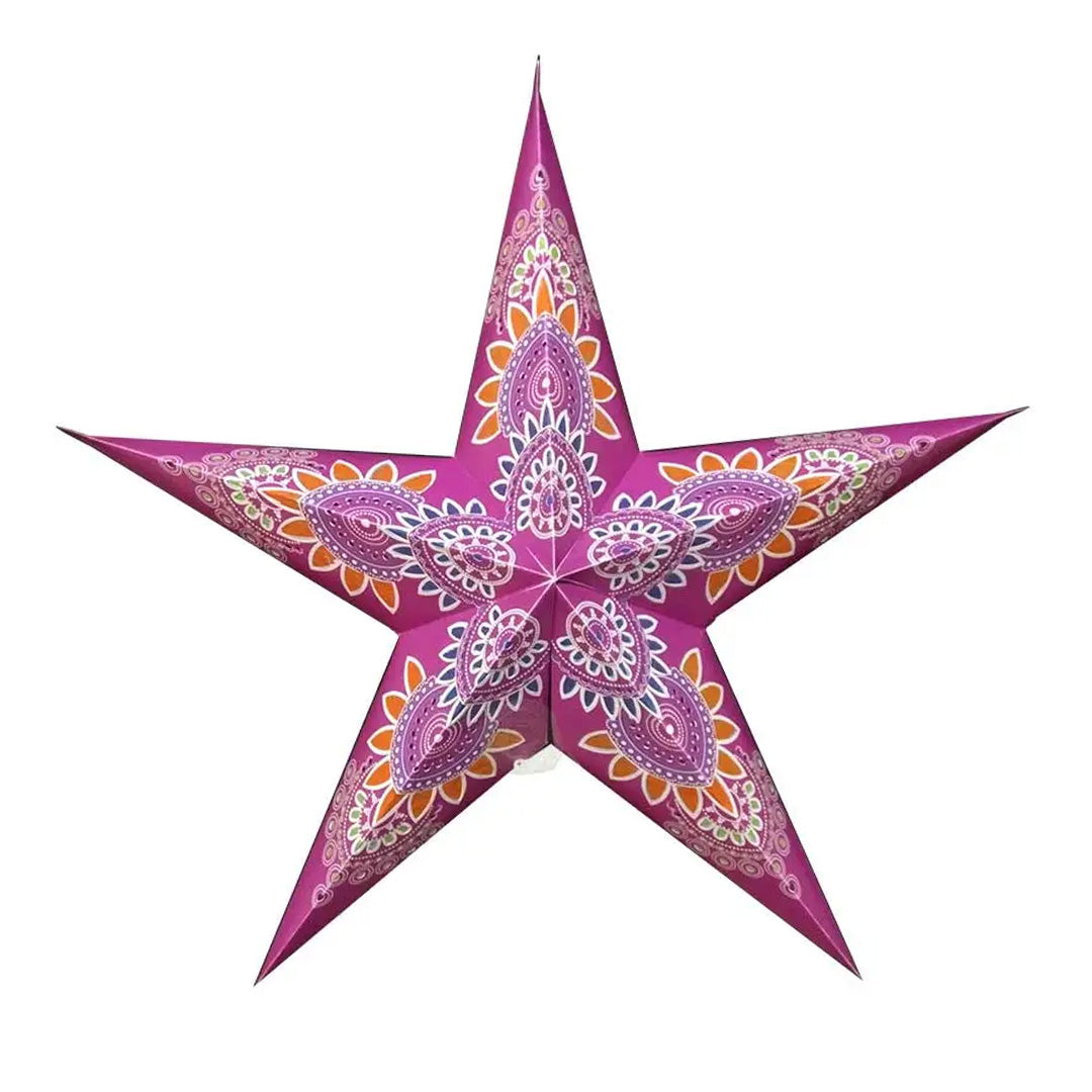 Fyld rummet med glæde og varme med Moonmind Anaya Stjernelampe – en håndlavet 5-takket papirlampe, der kombinerer lilla, orange og hvide nuancer i et detaljeret, blomsterinspireret mønster. Den levende farvepalet spreder et blødt og varmt lys, som skaber hygge og farverig stemning året rundt.