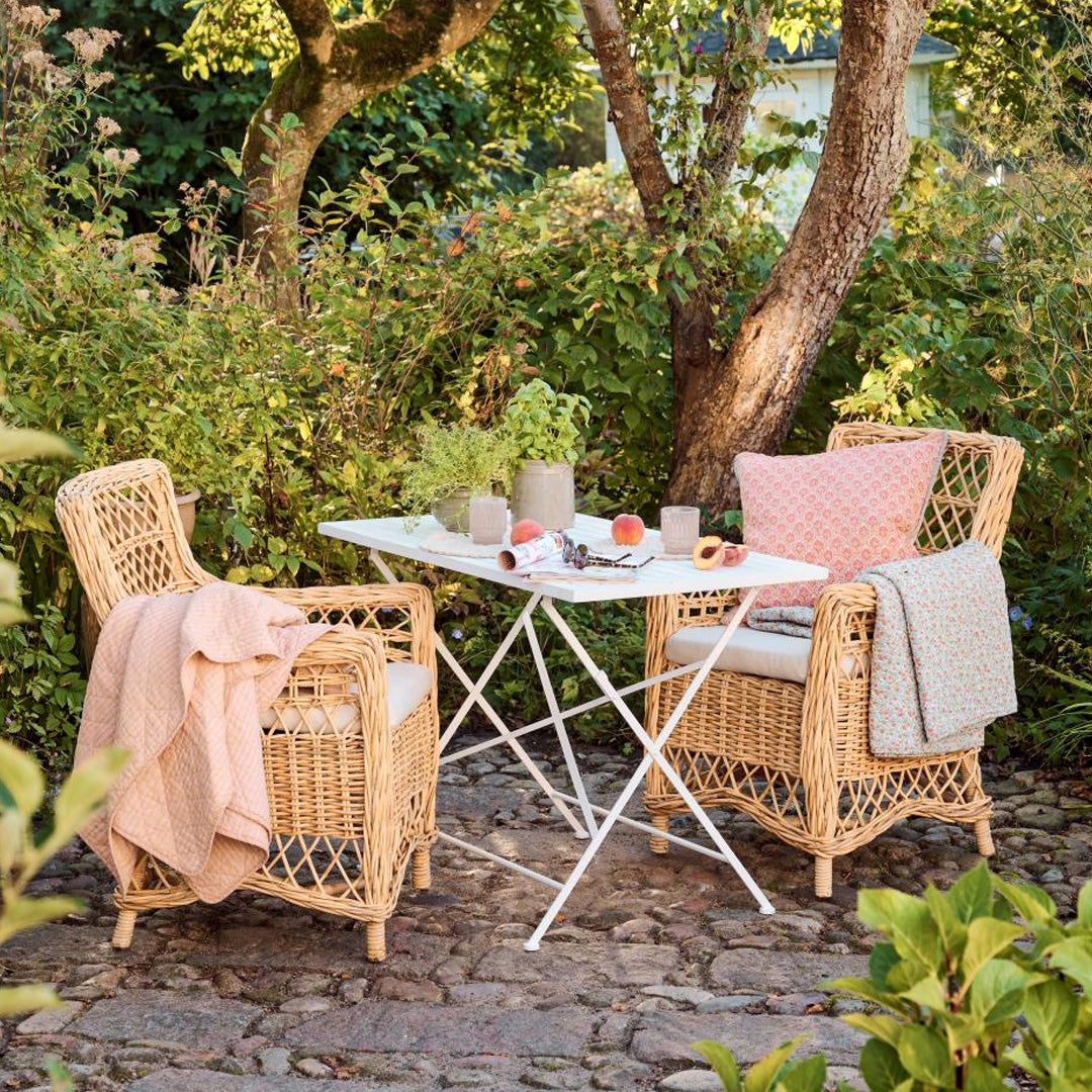 Let og funktionelt bord med naturlig fyrretræsplade og hvidt metalstel i et rent, tidløst design. Bordet kan nemt foldes sammen, hvilket gør det ideelt til altan, terrasse eller som fleksibelt ekstra bord indendørs. En praktisk løsning, når du har brug for ekstra bordplads uden at gå på kompromis med udtrykket.