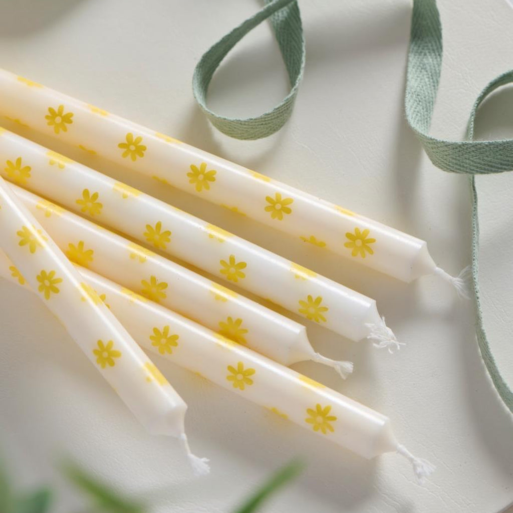 Ib Laursen - Kertelys 8 stk m/gule blomster stearin Ø:1,3 H:20 svanemærket