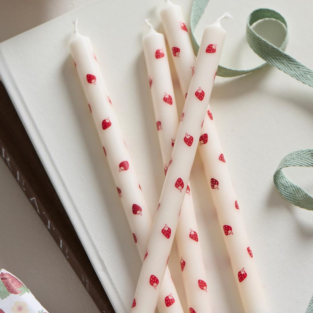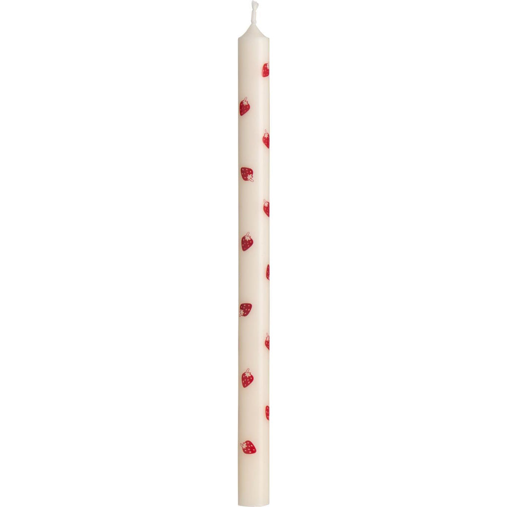 Skab en sommerlig og hyggelig stemning med dette høje og elegante kertelys dekoreret med røde jordbær. Det dekorative motiv tilfører borddækningen et friskt og legende udtryk og gør lyset velegnet til både hverdag og festlige anledninger.