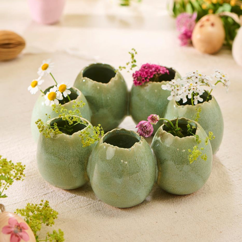 Ib Laursen - Keramisk Vase til 7 Blomster – Æggering Design / Grøn