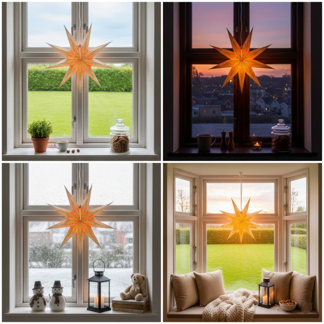 Den er ideel til vinduesophæng, stuen eller som dramatisk julebelysning, hvor den tilfører rummet varme og personlighed.
