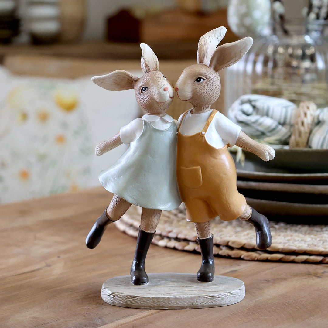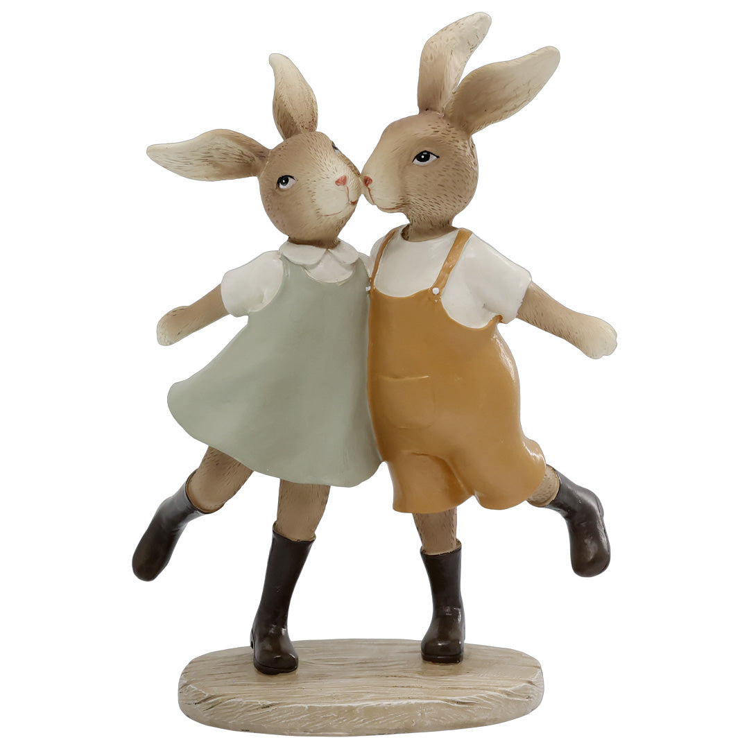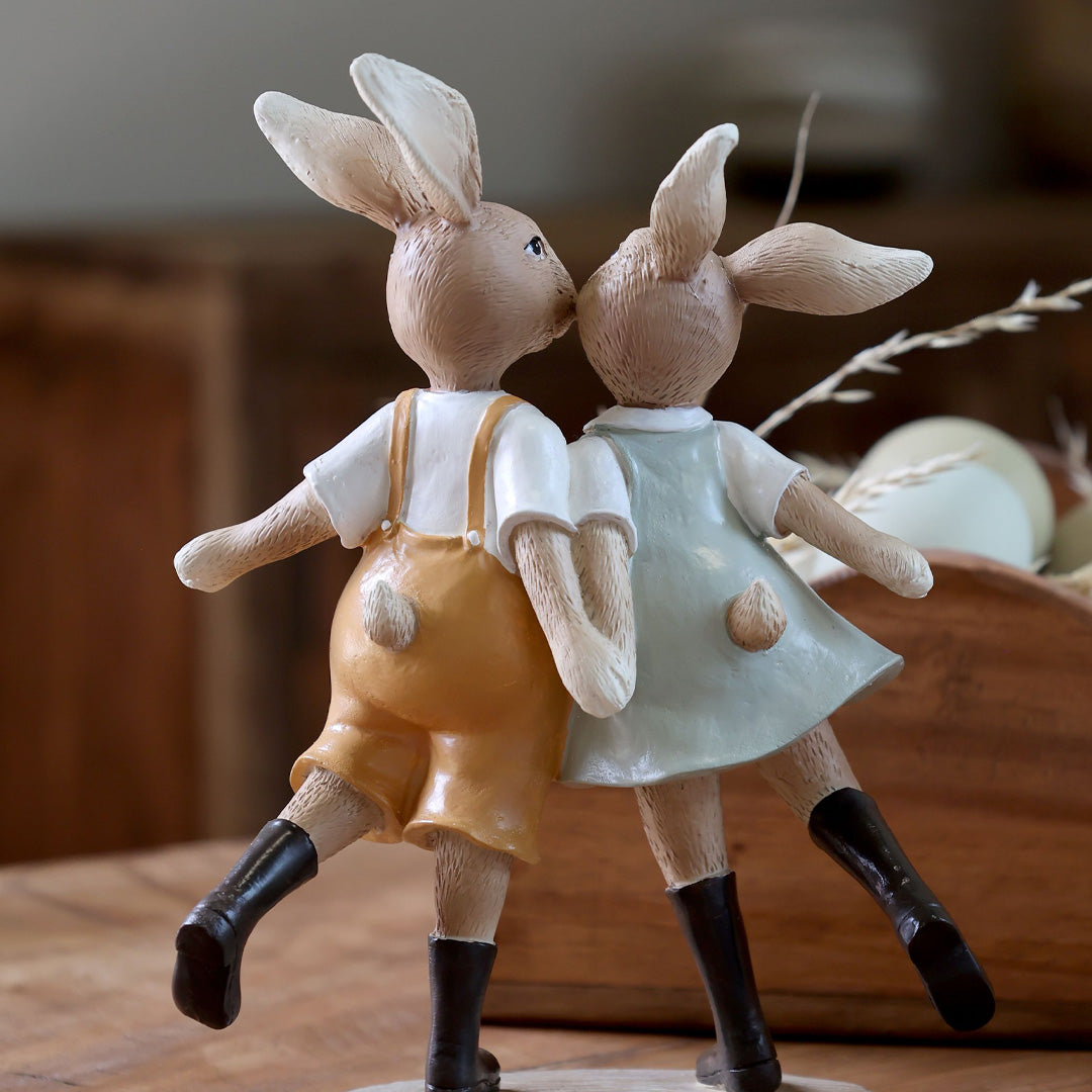 Charmerende påskefigurer med to kaniner klædt i kjole og bukser, håndmalet med fine detaljer og bløde farver fra Chic Antique. En klassisk og stemningsfuld dekoration, der passer perfekt til påske, forår og hyggelig bordpynt. Skaber varme og personlighed i både stue, entré og påskebord.