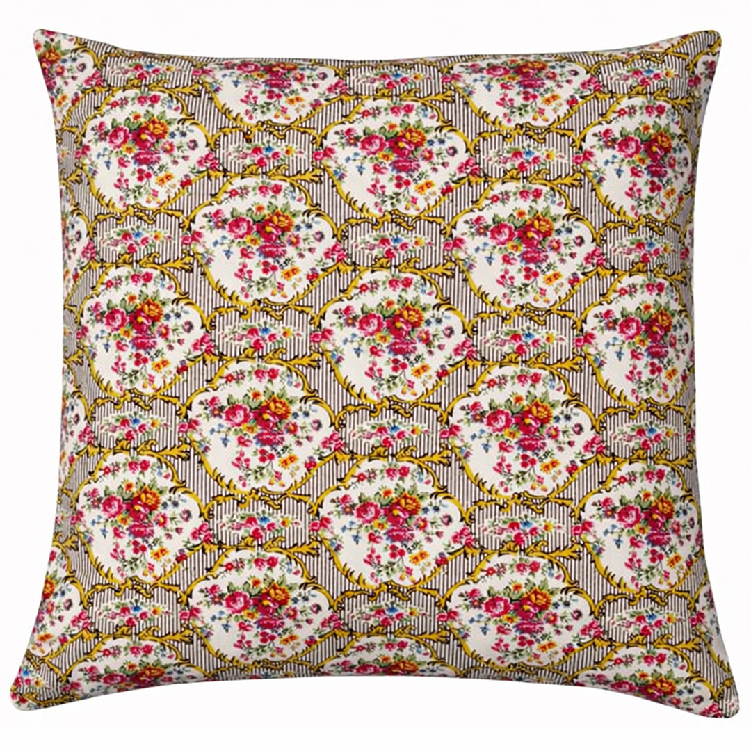Dette smukke Moonmind pudebetræk kombinerer klassisk elegance med et detaljerigt blomsterprint i guld, rosa og grønne nuancer. Designet giver et varmt, romantisk og vintageinspireret udtryk – perfekt til sofaen, lænestolen eller soveværelset.