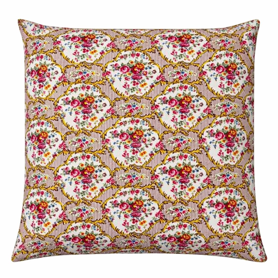 Dette charmerende pudebetræk bringer et strejf af klassisk vintage-stemning ind i hjemmet med sit smukke blomstermønster i varme rosa, guld og grønne nuancer. Designet er inspireret af tidløse tekstiler og tilføjer en romantisk og sofistikeret atmosfære til ethvert rum.
