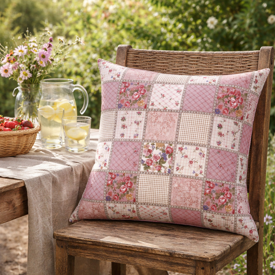 Skab en rolig, romantisk atmosfære i hjemmet med dette smukke pudebetræk i bløde rosa nuancer. Det delikate blomstermotiv kombineret med fine patchwork-inspirerede felter giver et klassisk, hyggeligt og elegant udtryk – perfekt til sofaen, lænestolen eller soveværelset.