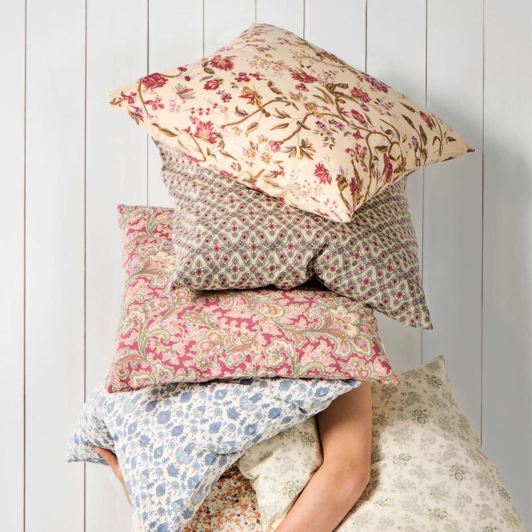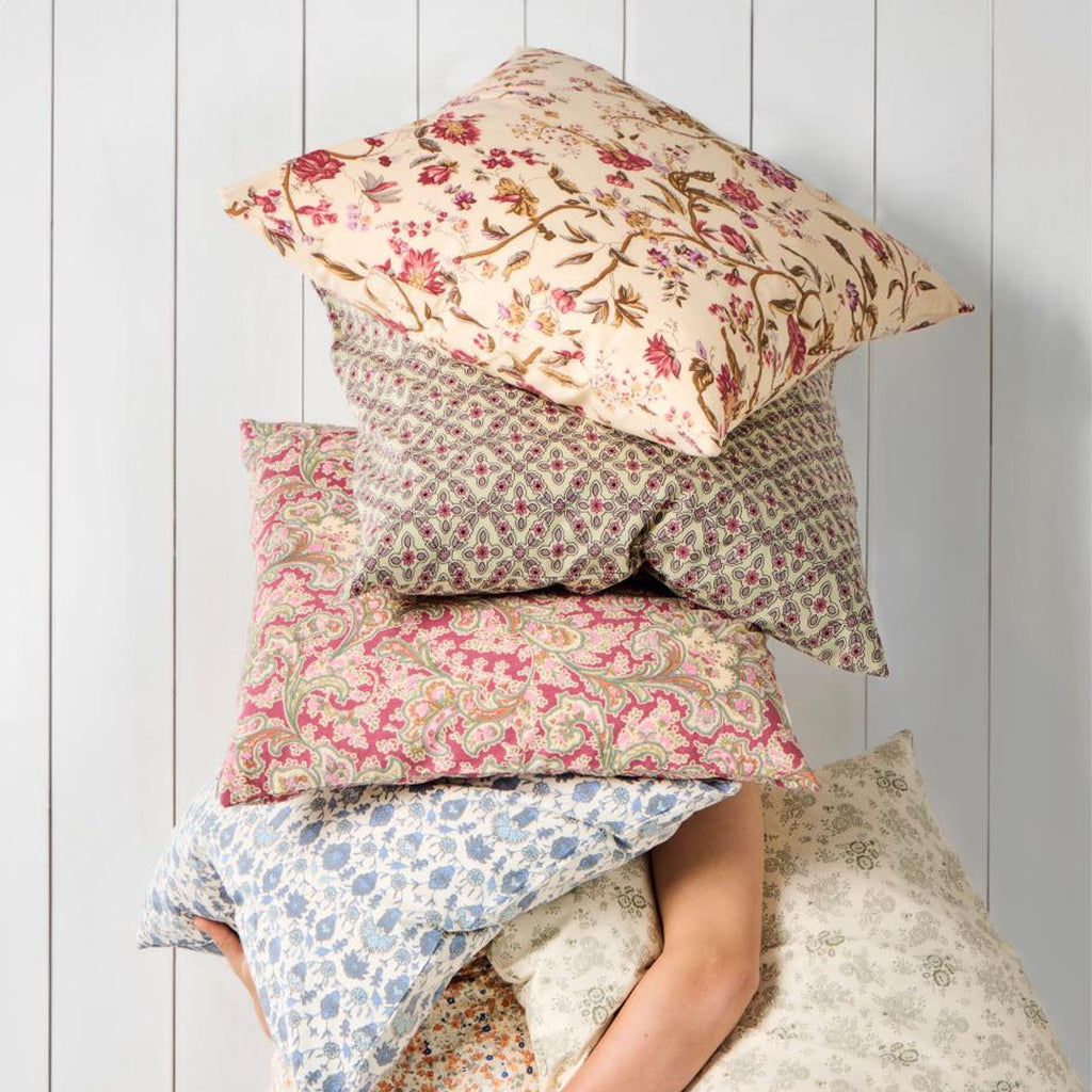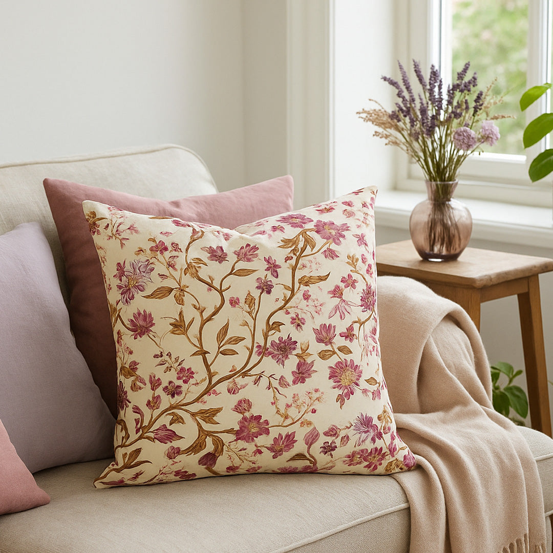 Skab et blødt, romantisk udtryk med Adele pudebetrækket. Den beige bund danner en rolig base for det fine blomsterprint i lilla og rosa nuancer, som tilfører femininitet og varme til din indretning.