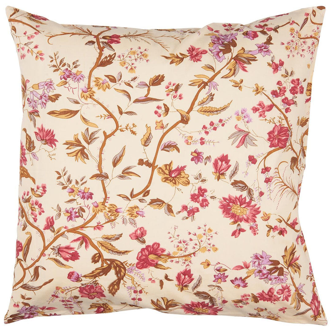 Ib Laursen - Pudebetræk Adele beige m/lilla og rosa blomster 50 x 50 cm