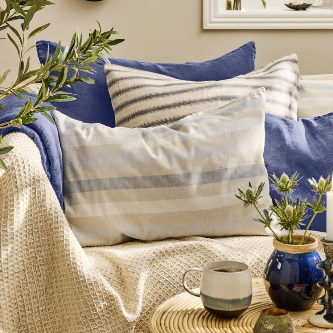 Ib Laursen - Pudebetræk natur m/hvide og lyseblå striber 50 x 70 cm