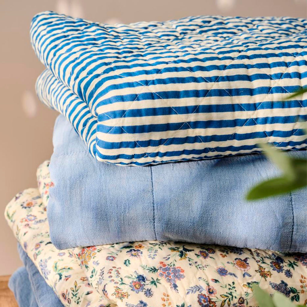 De quiltede vattæpper med motiver og striber passer perfekt til enhver indretning. Vattæpperne er både klassiske og moderne på samme tid og er et must-have i dit hjem.