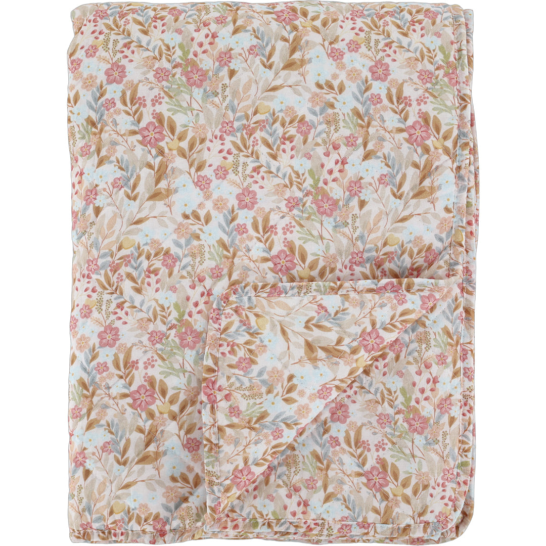 Quilten er fremstillet i 100 % bomuld, der giver en blød, åndbar og behagelig overflade. Det lette polyesterfyld sikrer en flot quiltet struktur og god komfort, hvilket gør tæppet ideelt som sengetæppe, plaid eller ekstra lag på kølige aftener.