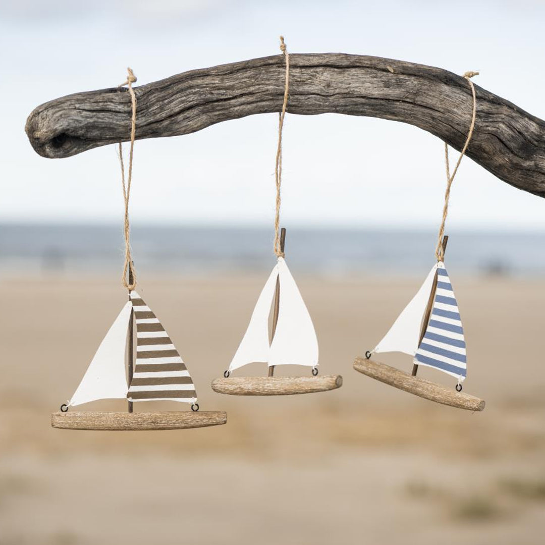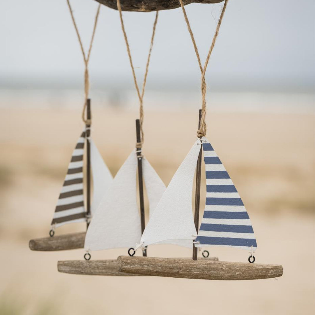 Bring en autentisk maritim stemning ind i hjemmet med disse håndlavede træskibe fra Nautico. De dekorative skibe er udstyret med sejl i canvas og jutesnor til ophæng, som understreger det naturlige og kystinspirerede udtryk. Perfekte som pynt i vinduet, på en krog, en gren eller direkte på væggen – ideelle til både hjemmet og sommerhuset.