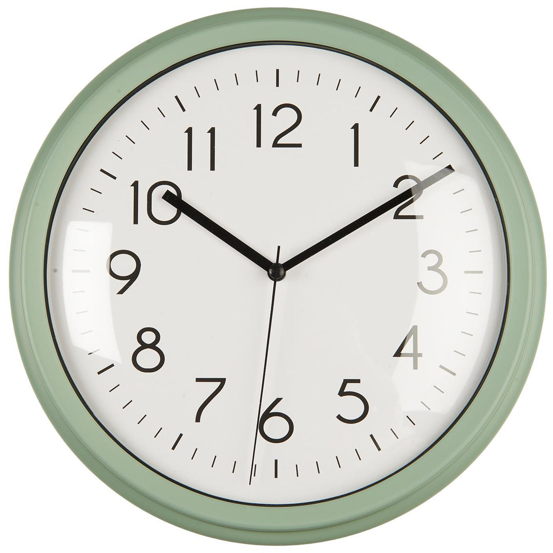 Tilføj et friskt og stilrent element til væggen med dette mellemstore vægur i støvgrøn med dekorativ kant. Uret er fremstillet i plastik, har en diameter på 26 cm og en højde på 5 cm, hvilket giver en god balance mellem synlighed og diskrethed. Det drives af 1 x AA-batteri (medfølger ikke) og fås i fire flotte farver, så du kan vælge den, der passer bedst til din indretning.