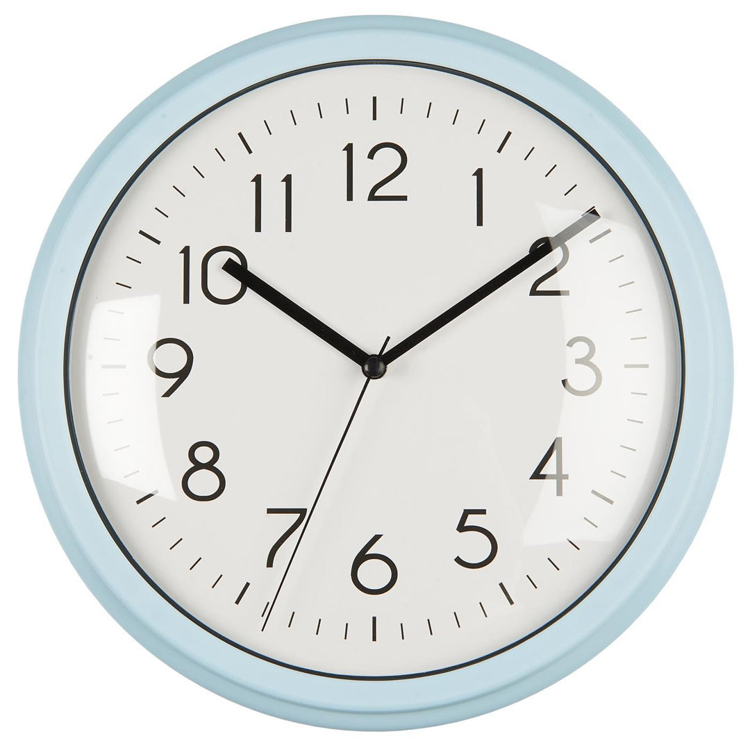 Tilføj et friskt og stilrent element til væggen med dette mellemstore vægur i turkis med dekorativ kant. Uret er fremstillet i plastik, har en diameter på 26 cm og en højde på 5 cm, hvilket giver en god balance mellem synlighed og diskrethed. Det drives af 1 x AA-batteri (medfølger ikke) og fås i fire flotte farver, så du kan vælge den, der passer bedst til din indretning.