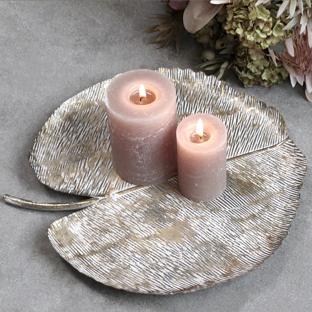 Bring naturens skønhed ind i din boligindretning med dette elegante Chic Antique fad formet som et blad. Med sin antique champagne-finish og fine struktur skaber fadet et eksklusivt og organisk udtryk, perfekt som underlag til bloklys, pynt eller nips.