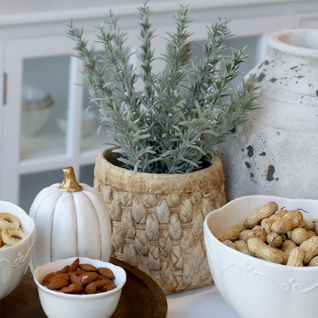 Skab en hyggelig og naturlig stemning i dit hjem med denne smukke kunstige rosmarinplante fra Chic Antique. Den realistiske plante står i en dekorativ potte med rustik struktur og varme jordtoner, som passer perfekt ind i den nordiske indretning.