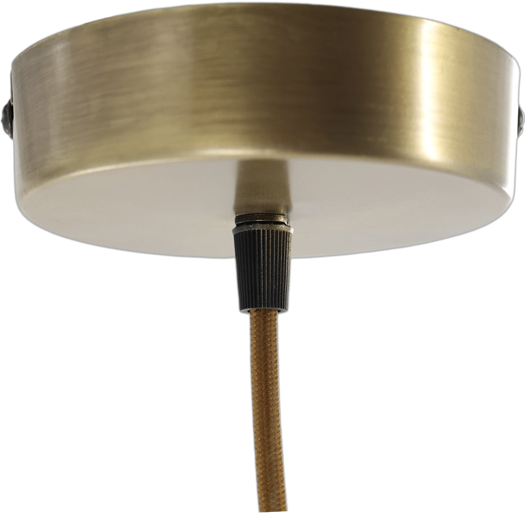 Med sin større diameter får denne variant et mere markant, men stadig harmonisk udtryk, hvilket gør lampen ideel over spisebordet, i køkkenet eller som et stilfuldt statement i stuen. Den emaljerede overflade kombineres smukt med den medfølgende stofledning og loftroset i messing, der tilfører et eksklusivt og gennemført finish.