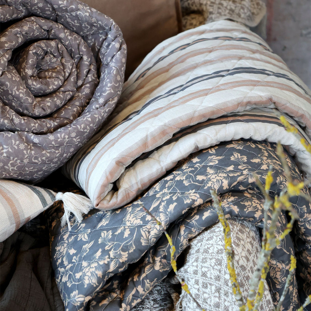 Aix Vintage Quilt – Bomuldstæppe med striber i cognac og latte