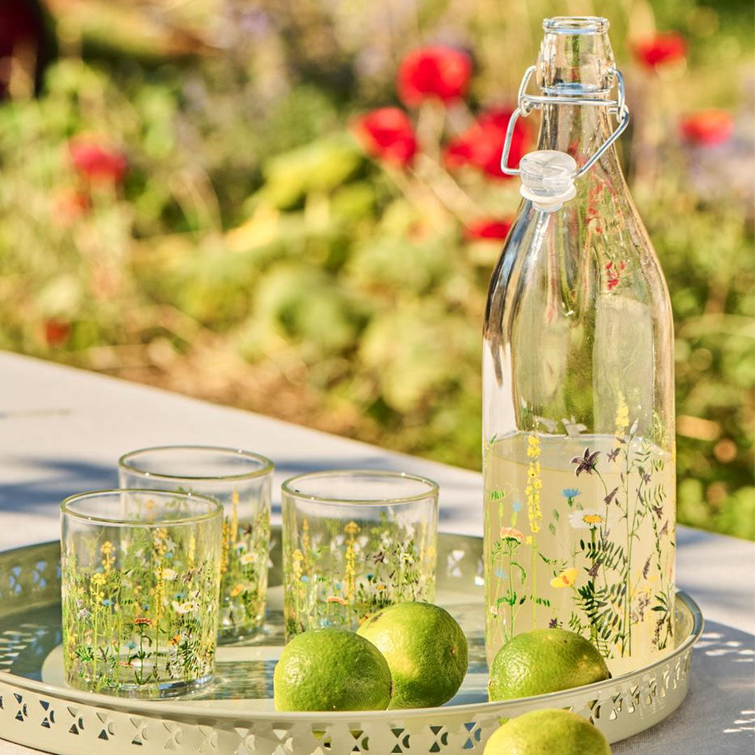 Denne stilrene glasflaske med patentlåg fra Summer Field-serien er både praktisk og dekorativ. Perfekt til servering af vand, saft, lemonade eller hjemmelavede drikkevarer – både til hverdag og festlige lejligheder.