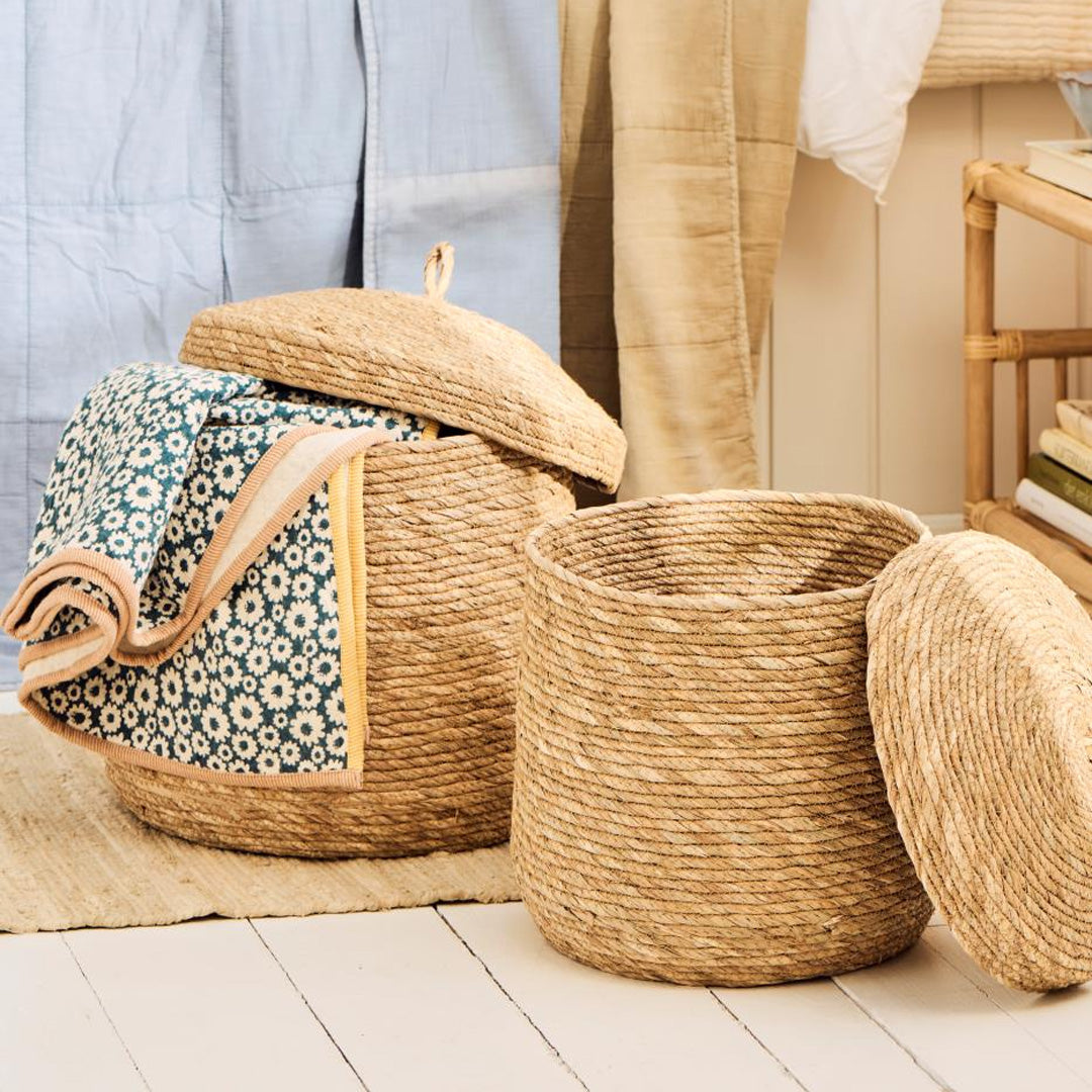 Det naturlige materiale og de bløde former skaber en varm og rolig stemning i indretningen – perfekt til dig, der elsker organisering med et naturligt touch.